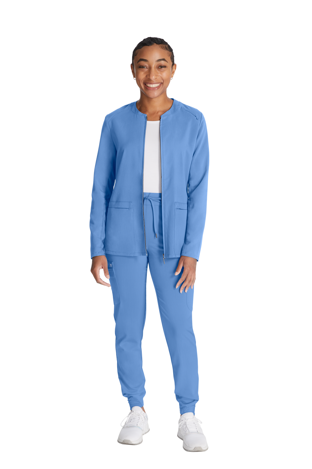Ce sarrau court zippé à col montant, de coupe contemporaine, peut aussi être utilisé comme veste pour vous garder au chaud.