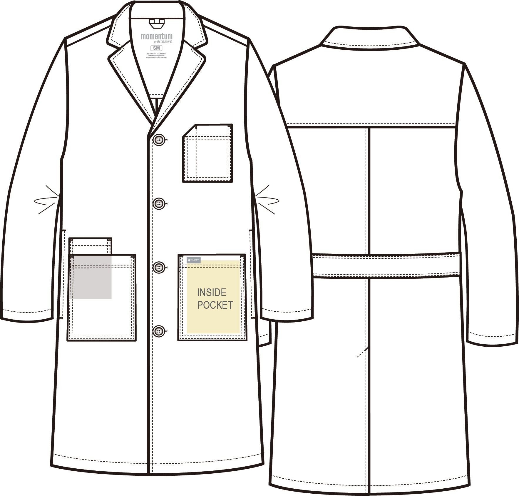 • Deux grandes poches en avant chacune avec une poche intérieur supplémentaire et une poche poitrine avec section pour crayon